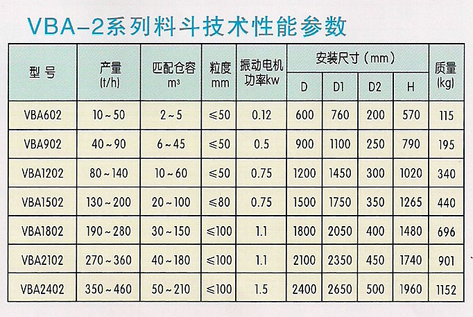 VBA系列振动料斗是本公司开发生产的一种新型振动给料设备,安装在各种料仓下部,通过振动使物料活化,能够有效消除物料的起拱、堵塞和粘仓现象,解决料仓排料难的问题。广泛用于化工、建材、冶金、机械制造、粮食及食品加工、饲料加工、环保、陶瓷等行业。